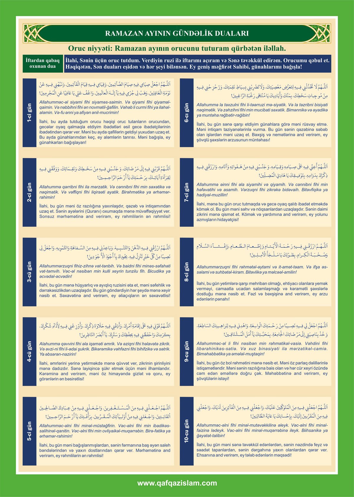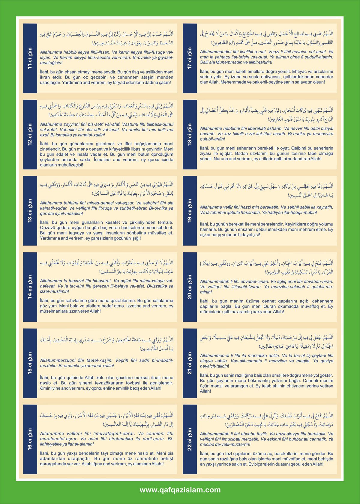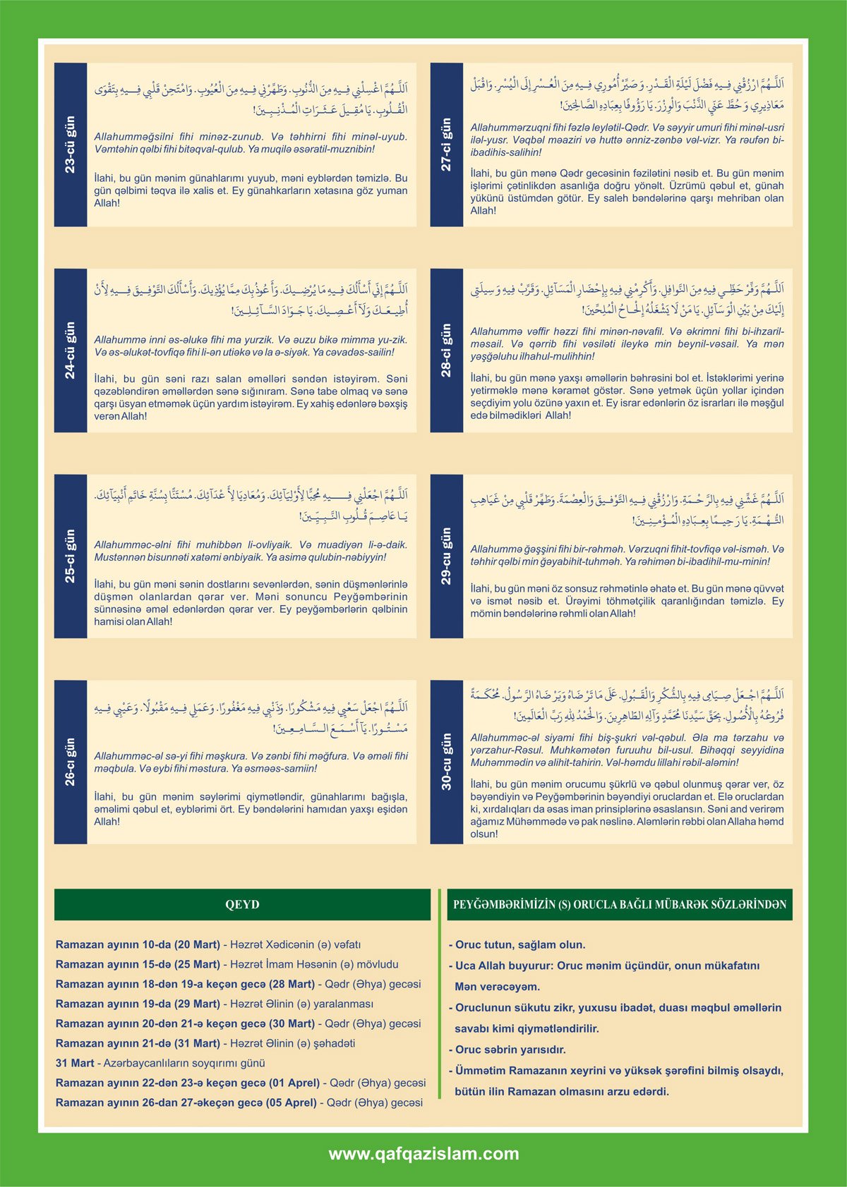 Ramazan ayının təqvimini və gündəlik duaları təqdim edir: