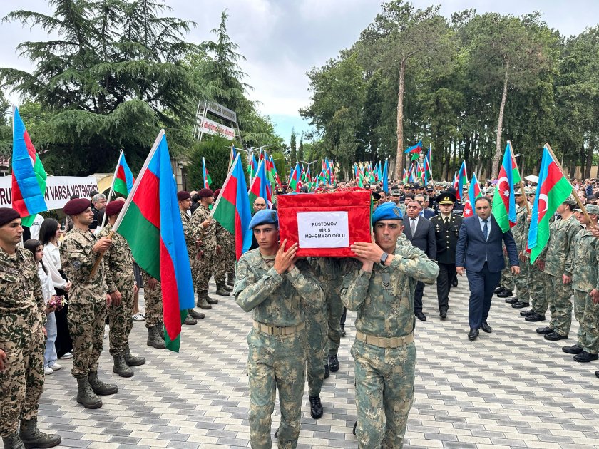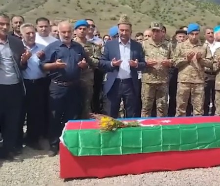 Şəhidin nəşi yaylım atəşi altında torpağa tapşırılıb. Tabuta bükülmüş Azərbaycanın üçrəngli bayrağı şəhidin qardaşına verilib.