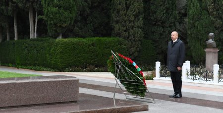 Prezident İlham Əliyev Ulu Öndərin məzarı önünə əklil qoydu.