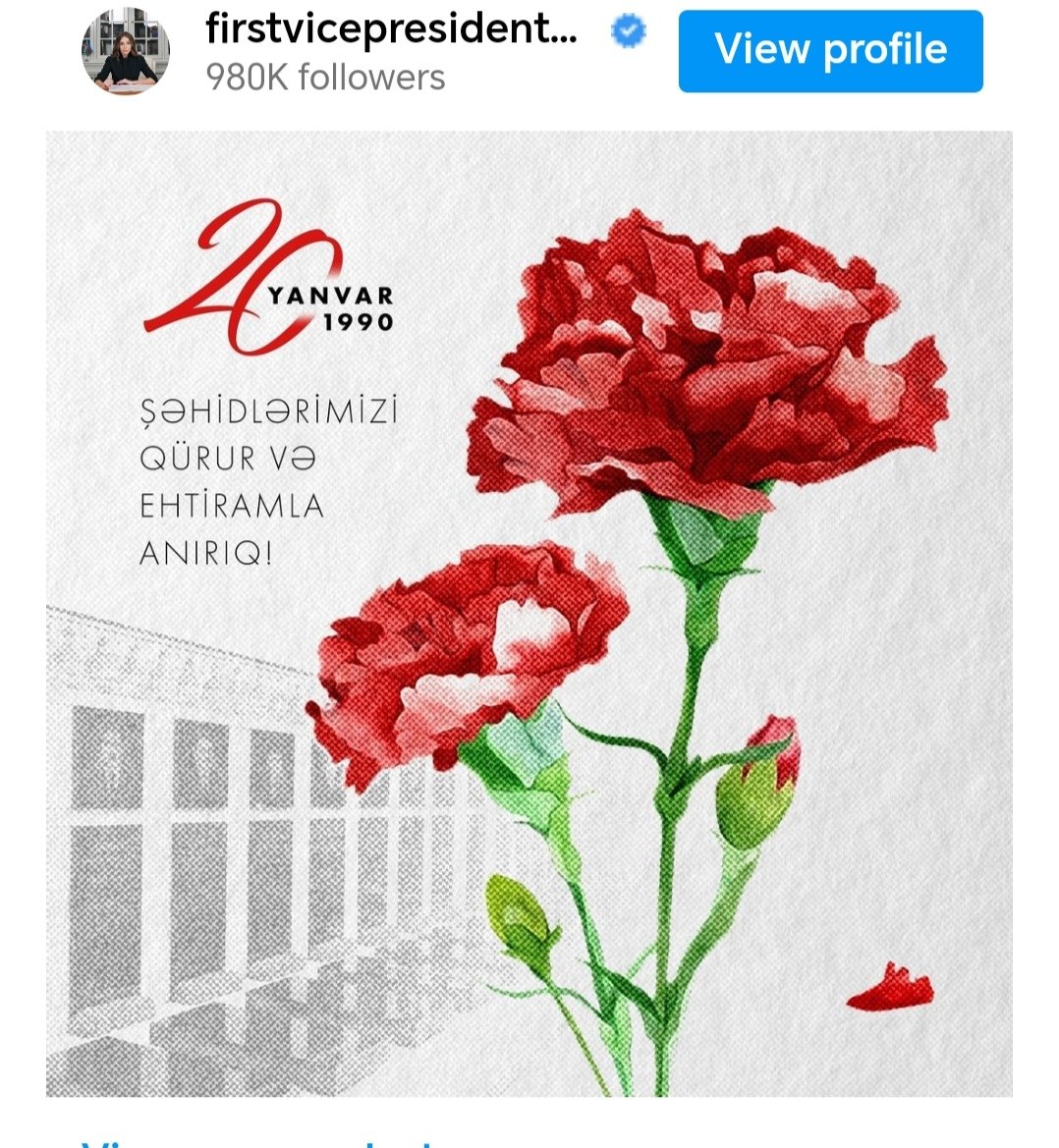 Birinci vitse-prezident Mehriban Əliyeva 20 Yanvar faciəsi ilə bağlı paylaşım edib.