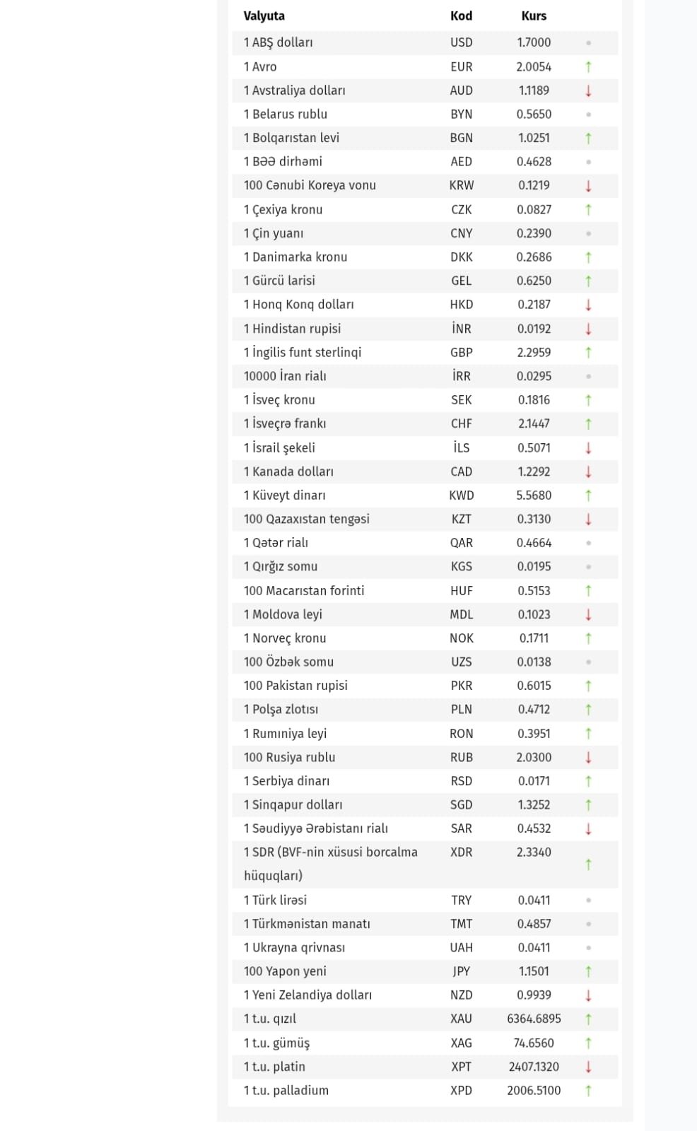 Azərbaycan Mərkəzi Bankı bu günün valyuta məzənnələrini açıqlayıb.